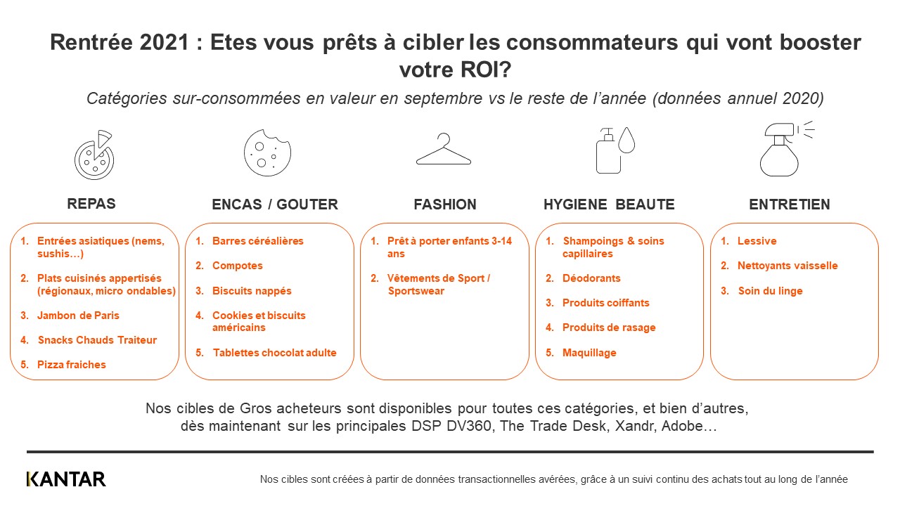 Nos cibles de Gros acheteurs sont disponibles sur toutes les catégories phares de la rentrée dès maintenant sur les principales DSP pour vous aider à maximiser votre ROI !