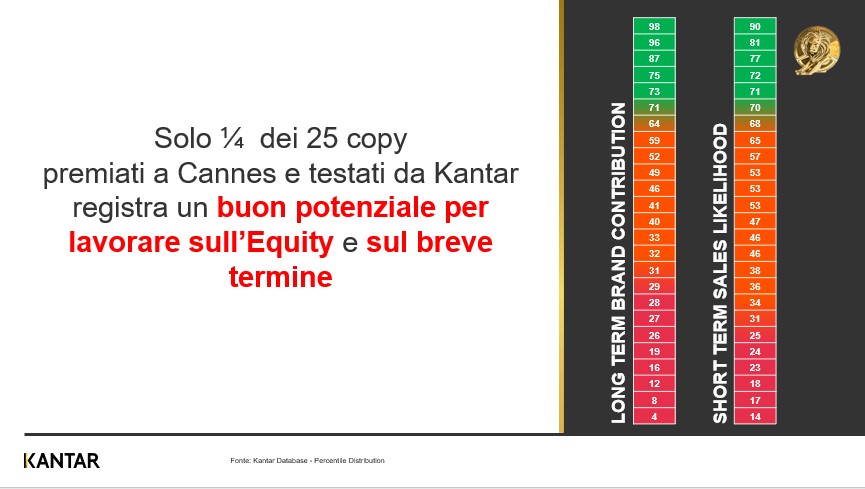 E proprio lì che la qualità della comunicazione ha un ruolo fondamentale da giocare. E per qualità non si intende solo creatività ma anche efficacia. Perfino copy molto creativi, come quelli premiati ai Lions di Cannes che generalmente eccellono in termini di distintività e capacità di coinvolgere l’audience, non sempre risultano efficaci.