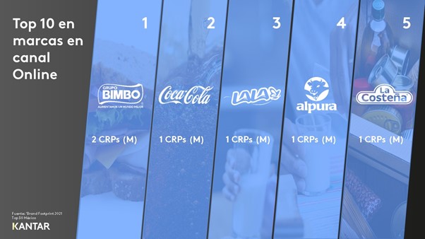 En la décima edición de Brand Footprint se incluyó por primera vez el ranking de las Marcas Más Elegidas Online en México. Debido a que este canal tiene mayor rendimiento a nivel global, 4 de cada 10 hogares en todo el mundo ahora utilizan este medio para hacer sus compras de bienes de consumo masivo.