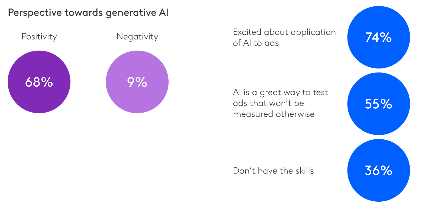 This means that there is still effort to be made to embrace this new technology and integrate into our work lives. Over one third (36%)  of marketers feel their team doesn’t have the right skills to use generative AI. Training is a necessity to power up and not fall behind those who are already making great use of AI’s capabilities in their creative and media planning.