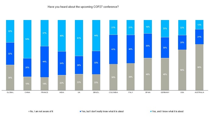 Awareness is one thing, however, and while a majority think COP27 will move the dial in the right direction, only 22% globally believe that the event will lead to significant progress.