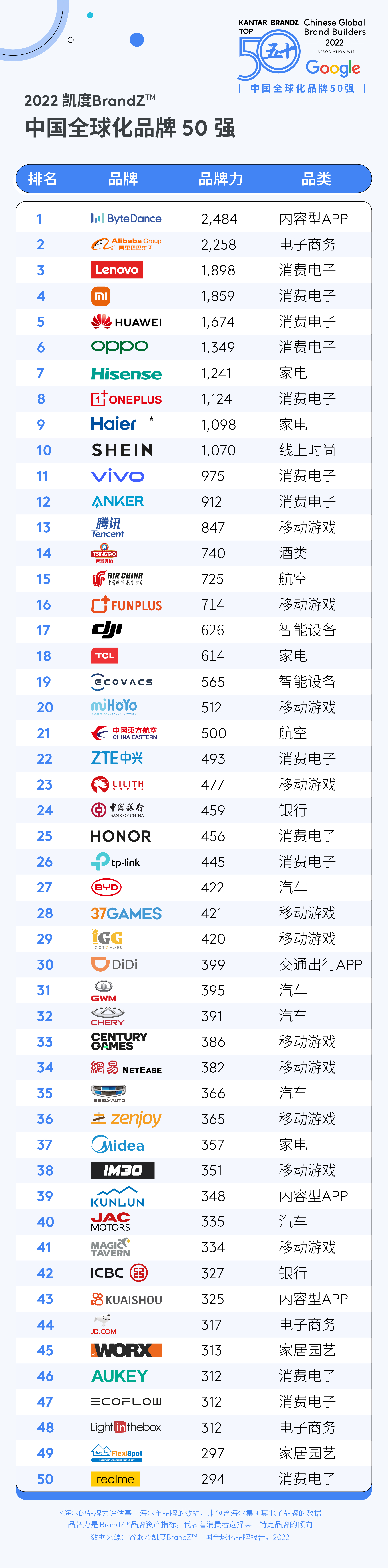 2022 凯度BrandZ中国全球化品牌10强